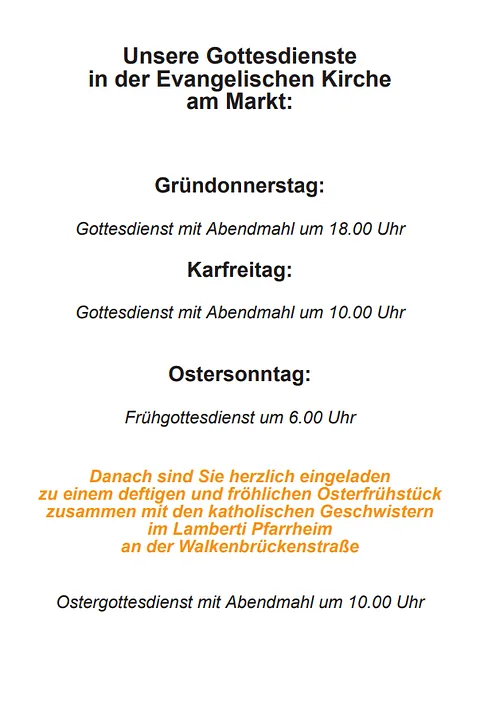 Bitte beachten: Um 10:00 Uhr findet kein Gottesdienst statt!