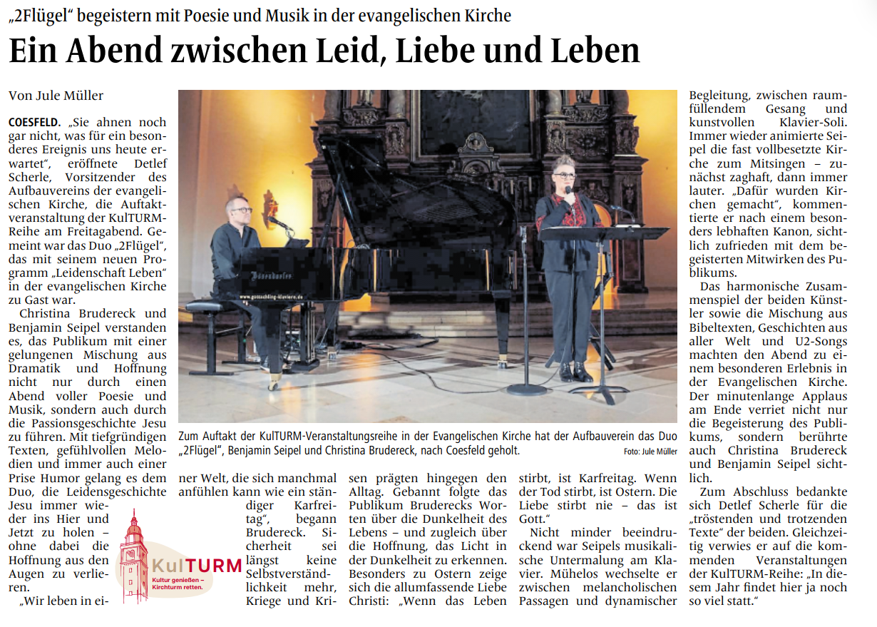 "2Flügel" begeistern mit Poesie und Musik in der evangelischen Kirche